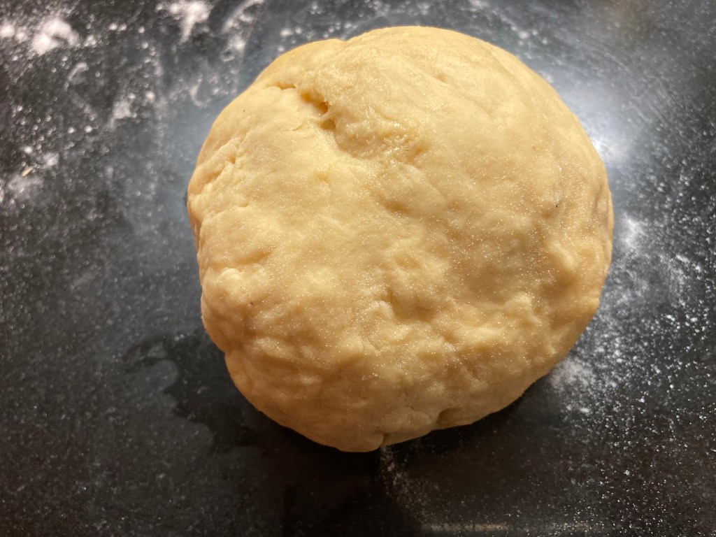 Una vez tenemos reposada la bola con la masa, la cortaremos en cuatro porciones y elaboraremos cuatro bolitas con ella.