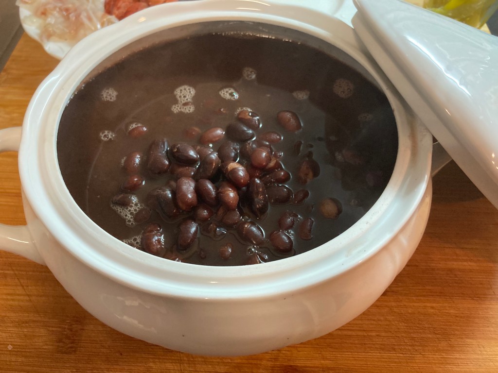 1- Colocaremos en una sopera las alubias de Tolosa con su caldo.
