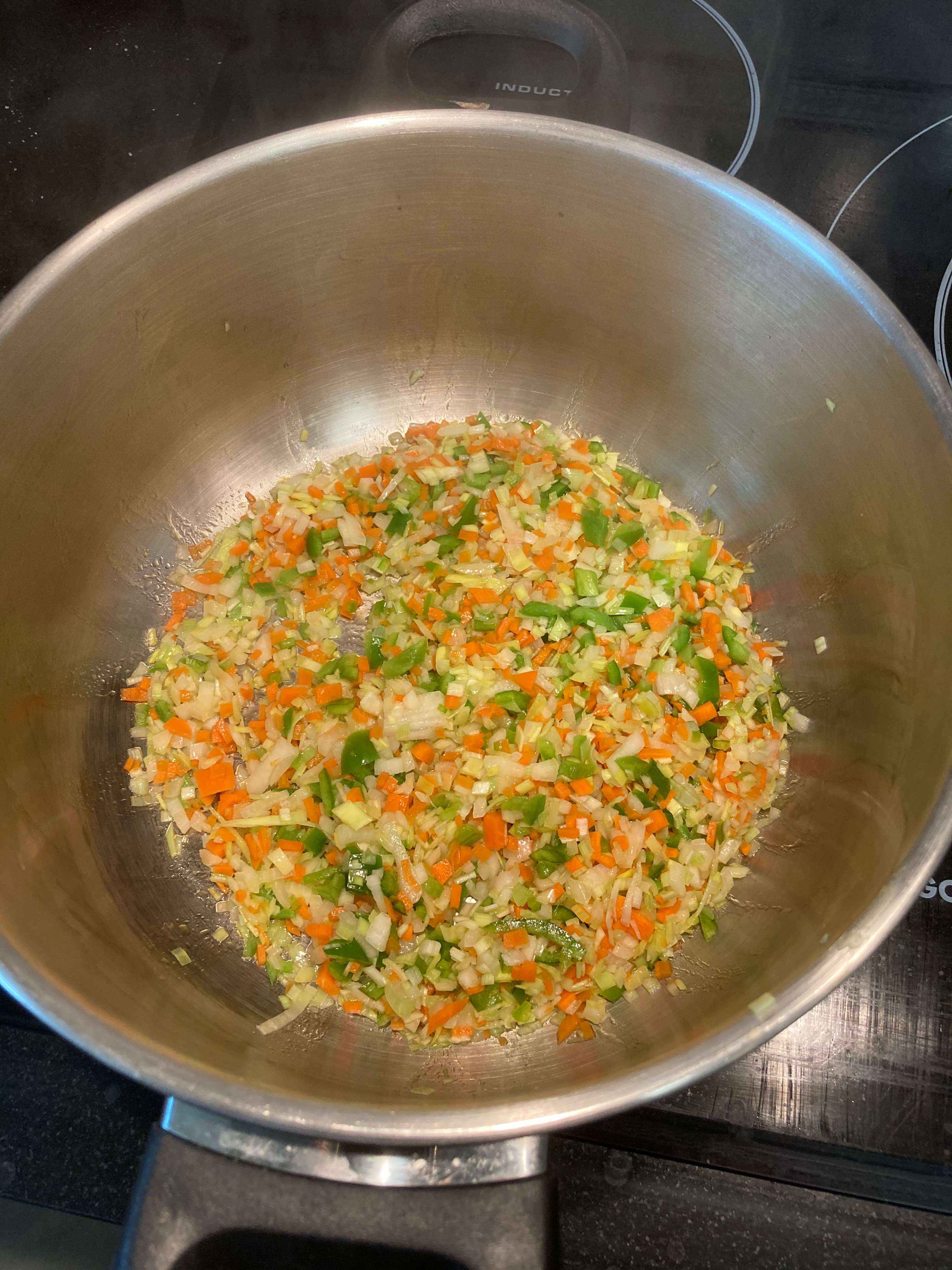 - Verduras (1 puerro, 1/2 cebolla, 1 tomate, 1 zanahoria, 1 pimiento verde, 1 diente de ajo y 1 hoja de laurel)