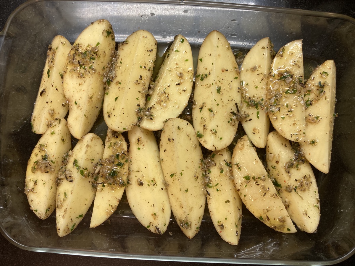 Podemos acompañar nuestro costillar con una simple ensalada de lechuga y cebolleta -estupenda- o podemos optar, como en este caso, por unas exquisitas patatas asadas, hoy traemos unas “patatas de luxe” o “patatas gajo”, que siempre nos van a dar muy buen resultado.